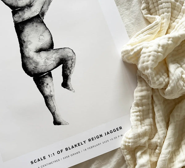 The Birth Poster est une série d’illustrations qui vous rappellent à quel point votre bébé était petit à sa naissance. Cette œuvre d’art intemporelle est réalisée à l’échelle réelle de la taille de votre bébé à la naissance. Si votre bébé mesurait 51 cm, l’illustration elle aussi mesurera précisément 51 cm. En bas du poster, nous imprimons les informations de la naissance de votre bébé : le nom, la taille, le poids et la date de naissance.