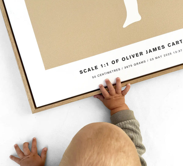 The Birth Poster est une série d’illustrations qui vous rappellent à quel point votre bébé était petit à sa naissance. Cette œuvre d’art intemporelle est réalisée à l’échelle réelle de la taille de votre bébé à la naissance. Si votre bébé mesurait 51 cm, l’illustration elle aussi mesurera précisément 51 cm. En bas du poster, nous imprimons les informations de la naissance de votre bébé : le nom, la taille, le poids et la date de naissance.