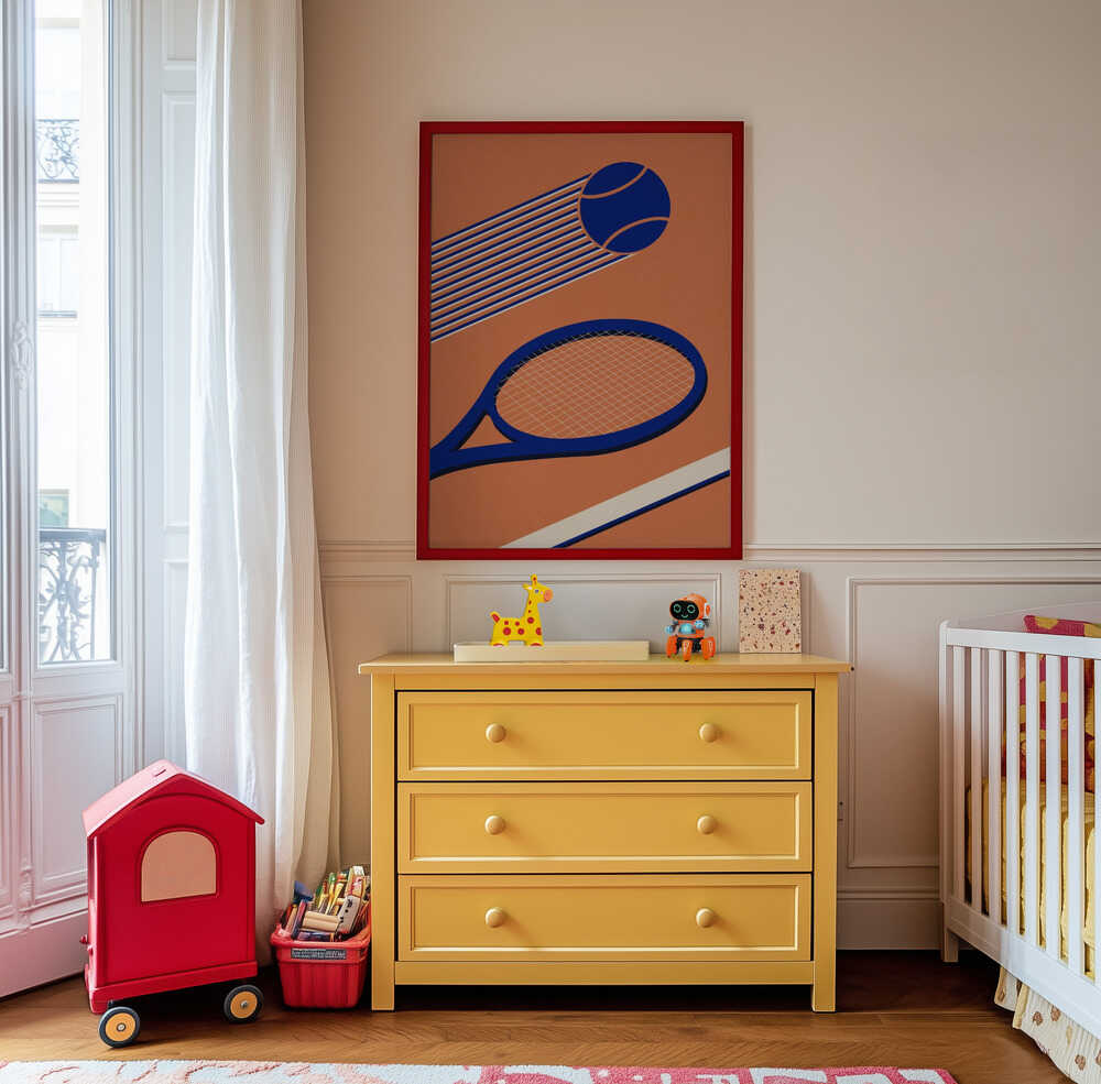 Apportez une touche sportive et pleine d’énergie à votre décoration avec cette affiche moderne aux tons bleu marine profond et argile chaude, représentant une raquette et une balle de tennis dans un style minimaliste. Sa composition épurée et sa palette équilibrée créent une atmosphère paisible sans surcharger l’espace. Conçue pour être à la fois intemporelle et ludique, elle s’intègre parfaitement au-dessus d’un berceau, d’un coin lecture ou d’un bureau. Un choix idéal pour la chambre de bébé, la chambre d’enfant ou un intérieur familial moderne, s’accordant harmonieusement avec le style scandinave et les murs galerie. Imprimée sur papier artistique de qualité musée à finition mate, elle conserve toutes ses nuances et détails au fil des années.